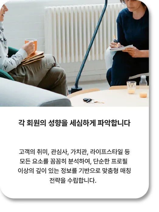 단순한 매칭을 넘어, 진정한 인연을 만나기 위한 다리 역할을 합니다.